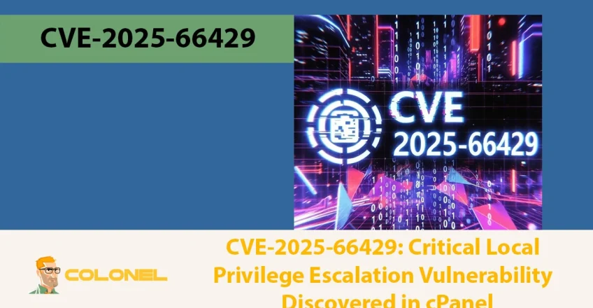 CVE-2025-66429 is a critical local privilege escalation vulnerability that allows a low-privileged cPanel user to gain full root access to the server.